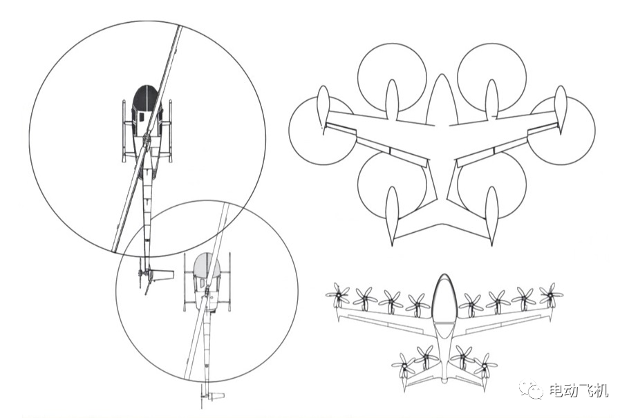 螺旋桨:6个倾斜螺旋桨,4个螺旋桨垂直倾斜,包括整个发动机舱,2个螺旋桨通过连杆机构垂直倾斜