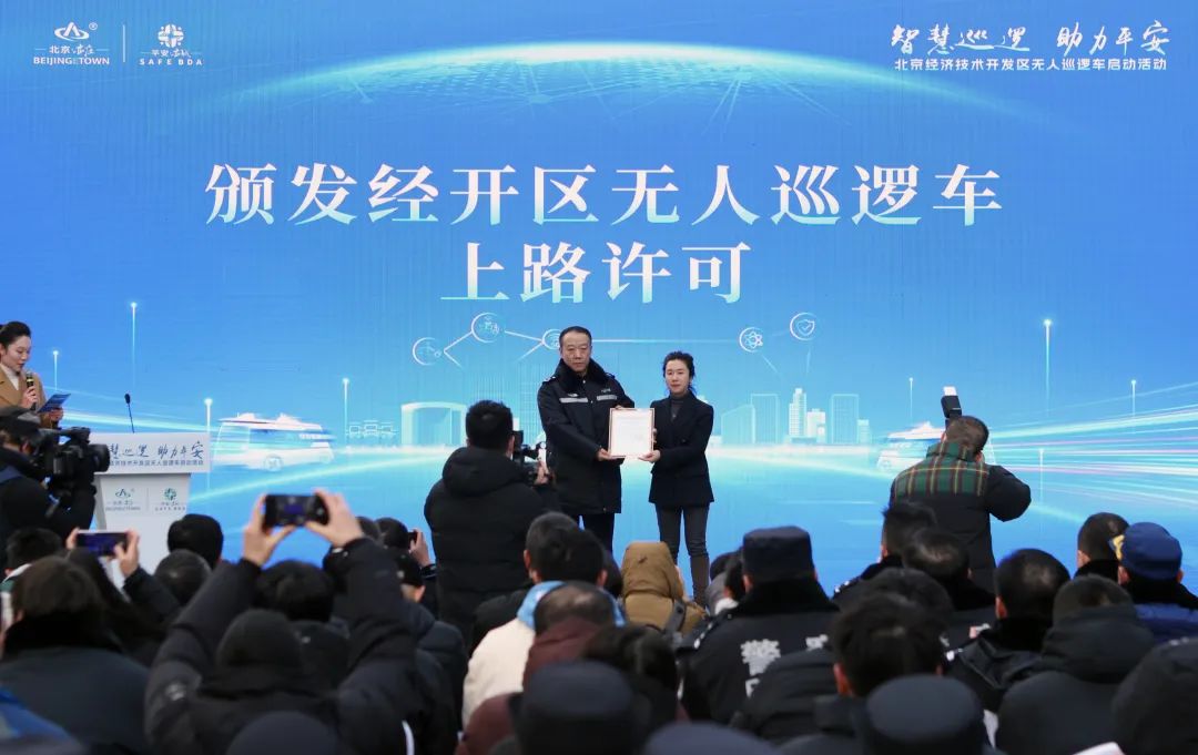 当天,新石器慧通(北京)科技有限公司(以下简称“新石器公司”)获得北京市高级别自动驾驶示范区工作办公室发放的无人巡逻车道路测试通知书。
