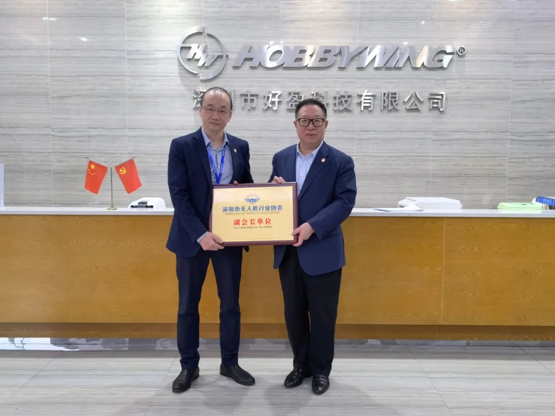 12月6日深圳市无人机行业协会会长杨金才、助理姚远、副秘书长吴泽霖、有鹏教育董事长姚付俊、国际无人系统CEO华少一行走访深圳市好盈科技有限公司(以下简称:好盈科技)考察,受到公司董事长兼总经理张捷,副总经理潘锐祥等高层的热情接待。双方就公司一系列产品和无刷动力系统等在行业的应用发展进行探讨,以及2022世界无人机大会进行深入交流并达成共识,最后杨会长为好盈科技颁发协会副会长单位牌匾。