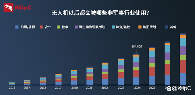 KlipC 的分析表明,注册工业无人机的使用开始出现爆炸式增长——从 2014 年的 13,000 架到 2021 年的近 600,000 架——这表明该行业“似乎正处于一个展示强劲增长阶段的拐点”。