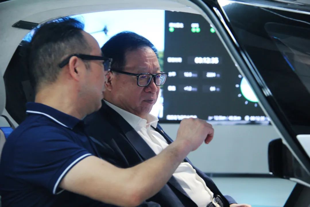 杨会长一行详细地了解小鹏汇天发展历程,并参观了小鹏汇天展厅所有飞行汽车车型,如领航者X2、领航者X1、旅航者T1。随后,在赵德力总裁的产品讲解下,杨会长亲自试坐旅航者X2,并对其产品给予了高度赞赏。