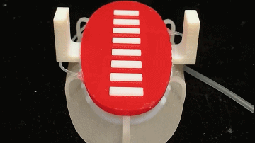 通过研究发现,吸盘鱼的吸盘上有一层鳃状软组织膜,膜下有一层骨骼结构。薄膜可以旋转或倾斜一定角度,这有助于粘合。然后,研究小组3D打印了一个长87 mm、宽46 mm的椭圆形圆盘,具有鳃状网格结构,其上配置有电机驱动的模拟吸盘鱼的结构,通过压力差产生吸附力。