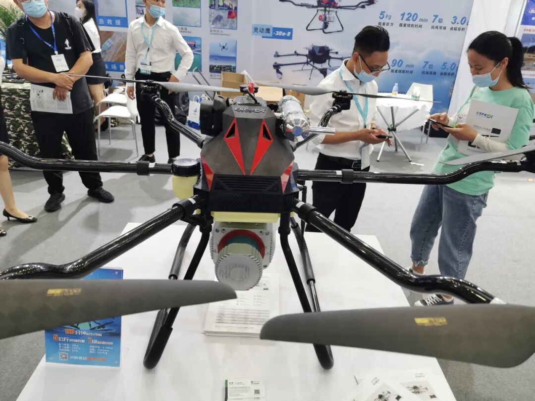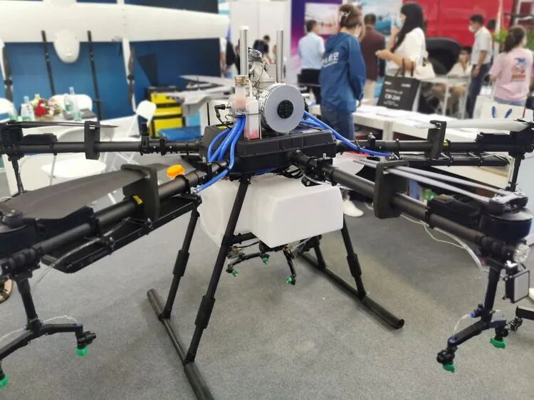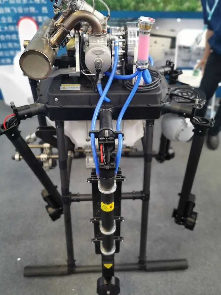 星际(江苏)航空主要从事固定翼、复合翼、多旋翼无人机和直升机研发和生产。本次大会,星际航空新发布XJ-2300油动大载荷长航时植保无人机,采用新型的油转电 技术,搭载大品牌水冷航空发电机,动力强劲,可挂载60升超大容量,药箱只需加油,无需再配备电池,航时更长。