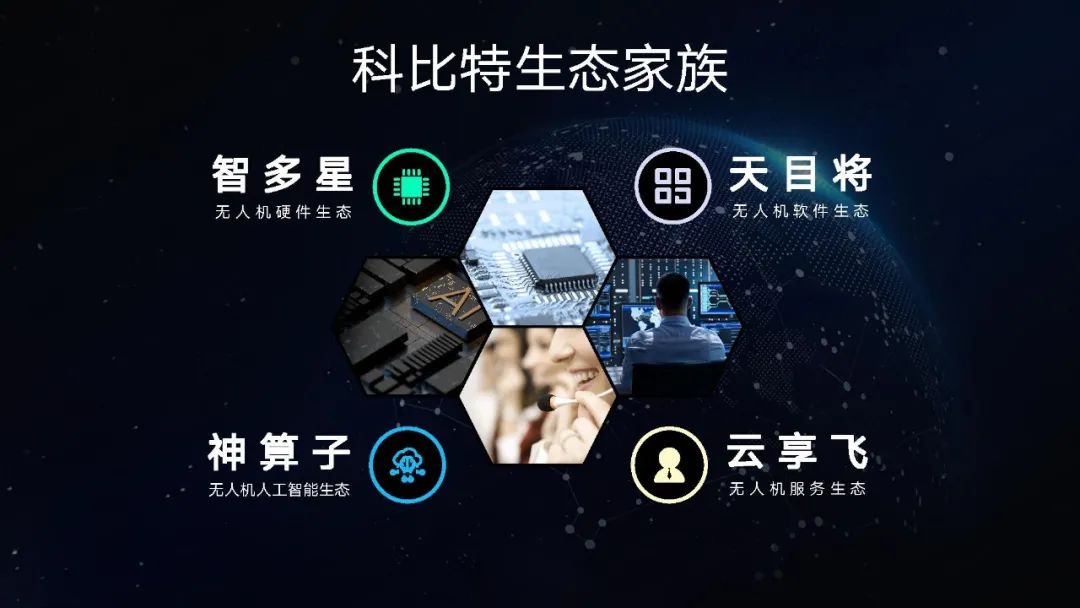 基于三大理念,科比特衍生发展出无人机四大生态体系,即“智多星”无人机硬件生态、“天目将”无人机软件生态、“神算子”无人机人工智能生态、以及“云享飞”无人机服务生态,每个生态既独立发展,又互联互通,共同构成科比特最核心的市场竞争力。